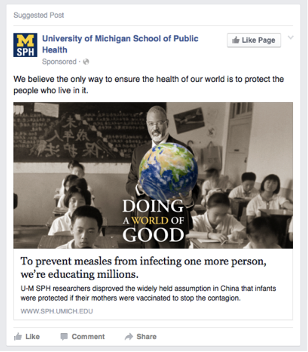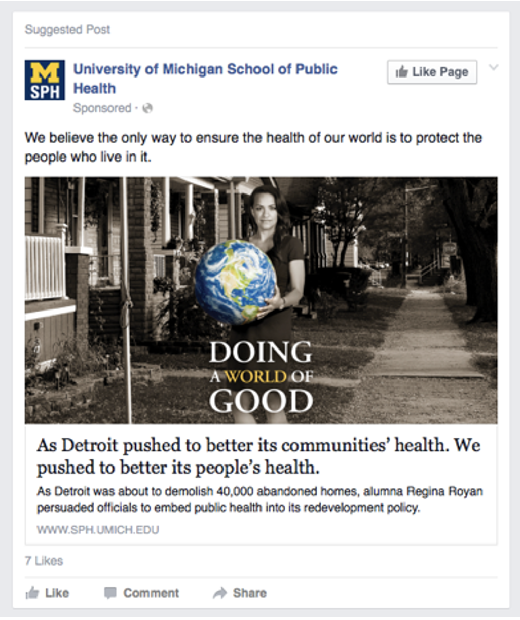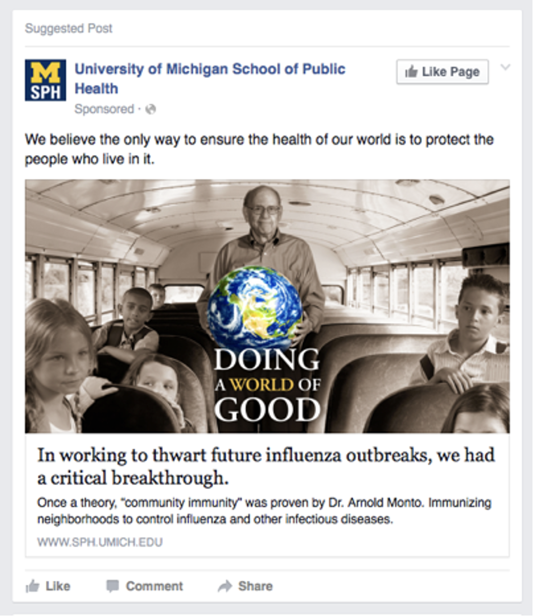 The University of Michigan School of Public Health was the #1 public research university in the US but no one knew. Our illuminating campaign spotlighted the great work UMSPH was doing. Deans of other public health schools were giving praise.